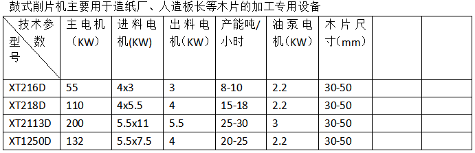 鼓式削片機主要用途為人造板廠、造紙廠、硅廠、生物質顆粒廠、電廠、香菇原料等用途的木材削片專用設備,用于各種樹木樹枝、邊角料、竹子及農作物的碎片加工,機型分為:XT216D、XT218D、XT2113、XT1250D、XT860和XT1300及XT1400系列等,動力可用電和柴油機作動力,削片方式主要為刀片式刀滾削片,產量每小時8--40噸。